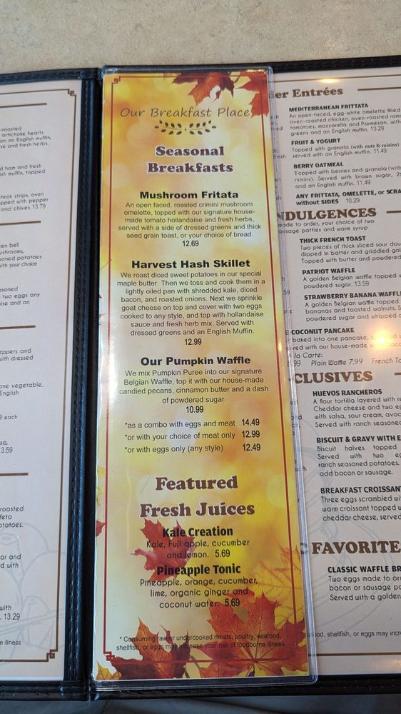 What sets Our Breakfast Place apart is its commitment to inclusivity, featuring numerous vegetarian and vegan options, along with gluten-free choices. The welcoming staff ensures a pleasant dining experience, we’ve heard glowing reviews about their prompt service despite busy hours. With provisions for takeout, delivery, and outdoor seating, and even dog-friendly areas, it caters to all dining preferences. Enjoy a delicious meal where quality and sustainability meet, all while enjoying free Wi-Fi and happy hour specials!