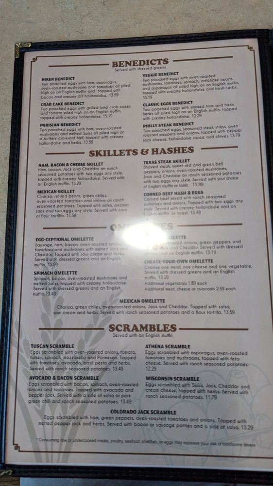 Scrambled eggs with pork sausage, oven roasted onions, green chiles, ranch seasoned potatoes, Jack and cheddar, wrapped in a flour toritlla and topped with salsa or pork green chili and herbs. Served with lettuce, tomatoes, sour cream, smashed avocado, and a side of ranch seasoned potatoes.